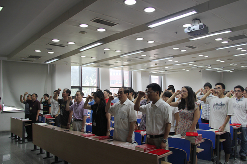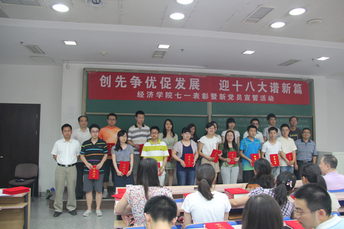 h视频 “创先争优促发展,迎十八大谱新篇”七一表彰大会暨新党员宣誓活动6月20日下午在明德主楼0101教室举行。h视频 党委委员方芳、陈彦斌、杨达伟等、全体党支部书记、受表彰的党员以及本学年新发展的119名预备党员等参加了大会。大会由h视频 党委副书记丁凯副教授主持。