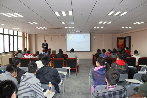 会见后,Martin Glaum教授在明德主楼728会议室世纪经英讲坛发表了题为“国际会计准则与提高信息披露质量的重要性”的学术演讲。Martin Glaum教授的演讲分两个部分,第一部分是一个关于会计准则差异及变化趋势的演讲。在这一部分,Glaum教授用其丰富的知识告诉学生们由于市场体制、税收体制及法律体系的不同,各国的会计制度本来是差异很大的。但随着国际化组合投资的剧烈增加,资本市场投资者对于企业信息披露的要求不断增加,各国会计制度呈现出趋同现象。第二部分,Martin Glaum教授介绍了他的研究成果 ,即国际上采用了IFRS即国际财务报表准则后,德国的企业确实提高了会计信息披露的质量,而信息披露质量的改善确实有利于投资者减少投资误判。