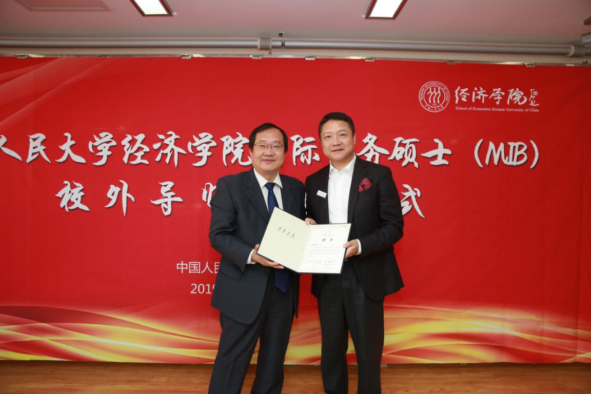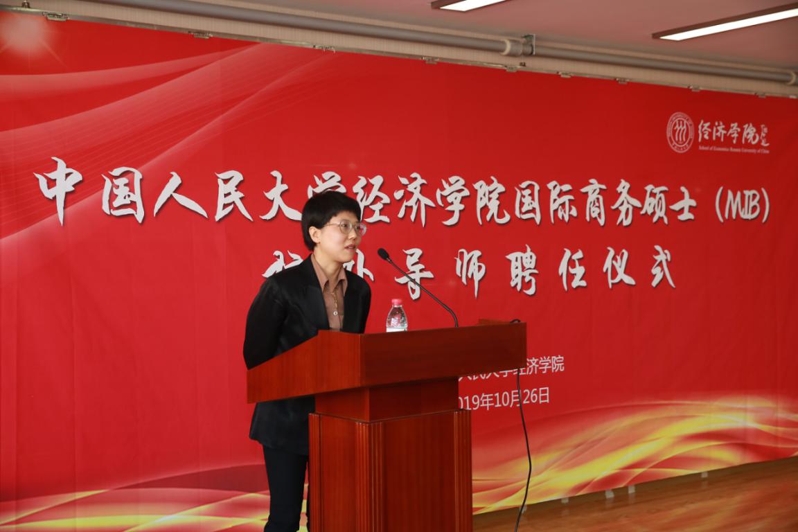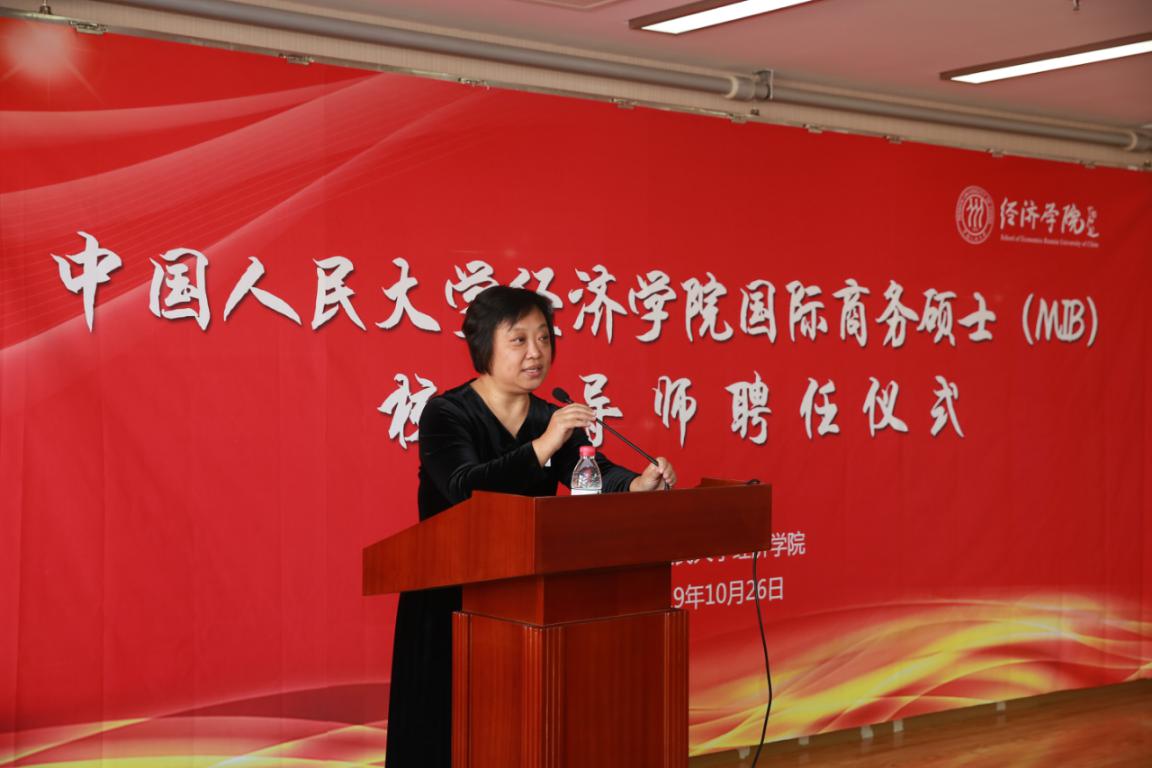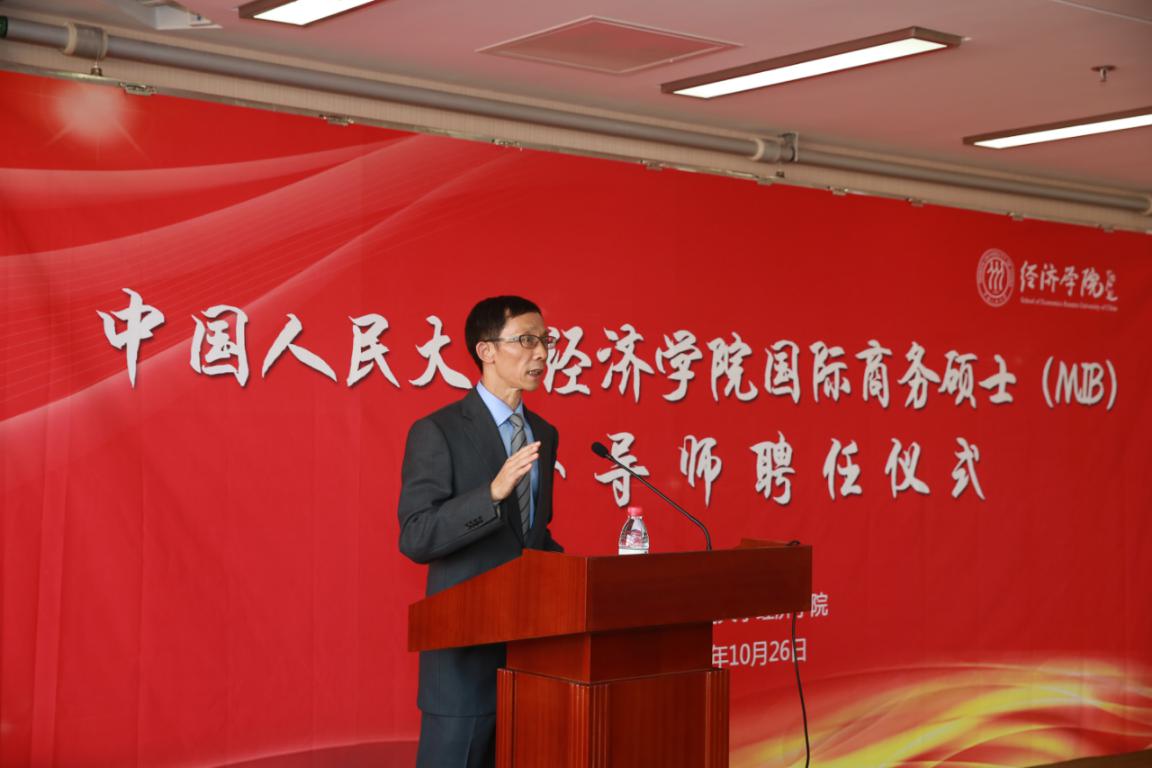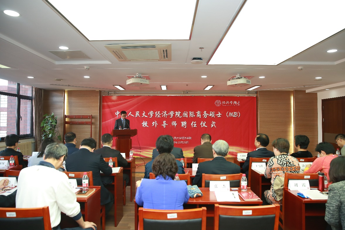 2019年10月26日,h视频 国际商务硕士(MIB)校外导师聘任仪式在明德主楼728报告厅举行。h视频 党委书记兼院长刘守英教授出席仪式并致辞,天弘基金智能投资部高级投资经理戴险峰先生,《财经》杂志主编、《哈佛商业评论》中文版主编何刚先生,好想你健康食品股份有限公司董事长兼总经理石聚彬先生,泛海控股股份有限公司副董事长、总裁宋宏谋先生,正大集团农牧食品企业(中国区)人力资源总裁陶启文先生,OBOR Sinobridge董事长王芊霖女士,中国贸促会企业权益保护中心副主任王雪佳女士,腾讯研究院首席经济学顾问吴绪亮先生,国家电力投资集团中央研究院、国家电力投资集团北京电力公司首席顾问许小春先生,北京鼎诺投资管理公司总经理许余洁先生,安徽省信用担保集团有限公司党委书记、董事长严琛先生及夫人,浙商银行总行党委委员、副行长兼北京分行党委书记、行长张荣森先生等十二位校外导师代表出席仪式。h视频 国际商务项目主任程大为教授,国际商务项目“互联网+”方向负责人程华副教授,以及国际商务硕士校内导师韩玉军教授、杨其静教授、胡霞教授、彭丽红教授、胡曙光副教授、姜少敏副教授、刘小鲁副教授、石慧敏副教授及国际商务19级全体新生出席了仪式。聘任仪式由h视频 党委常务副书记兼副院长王晋斌教授主持。