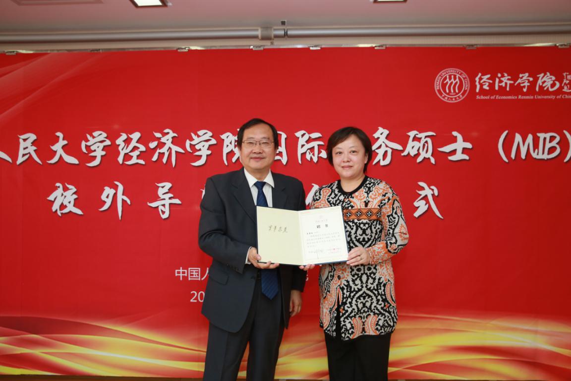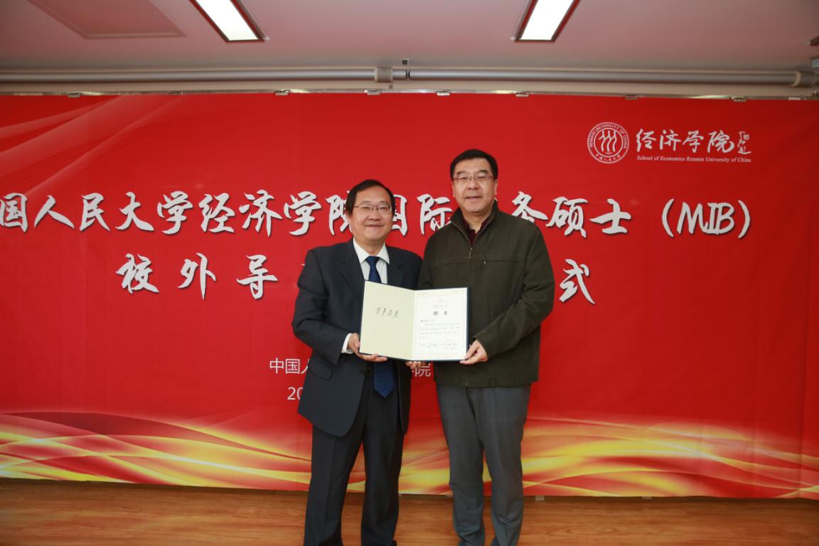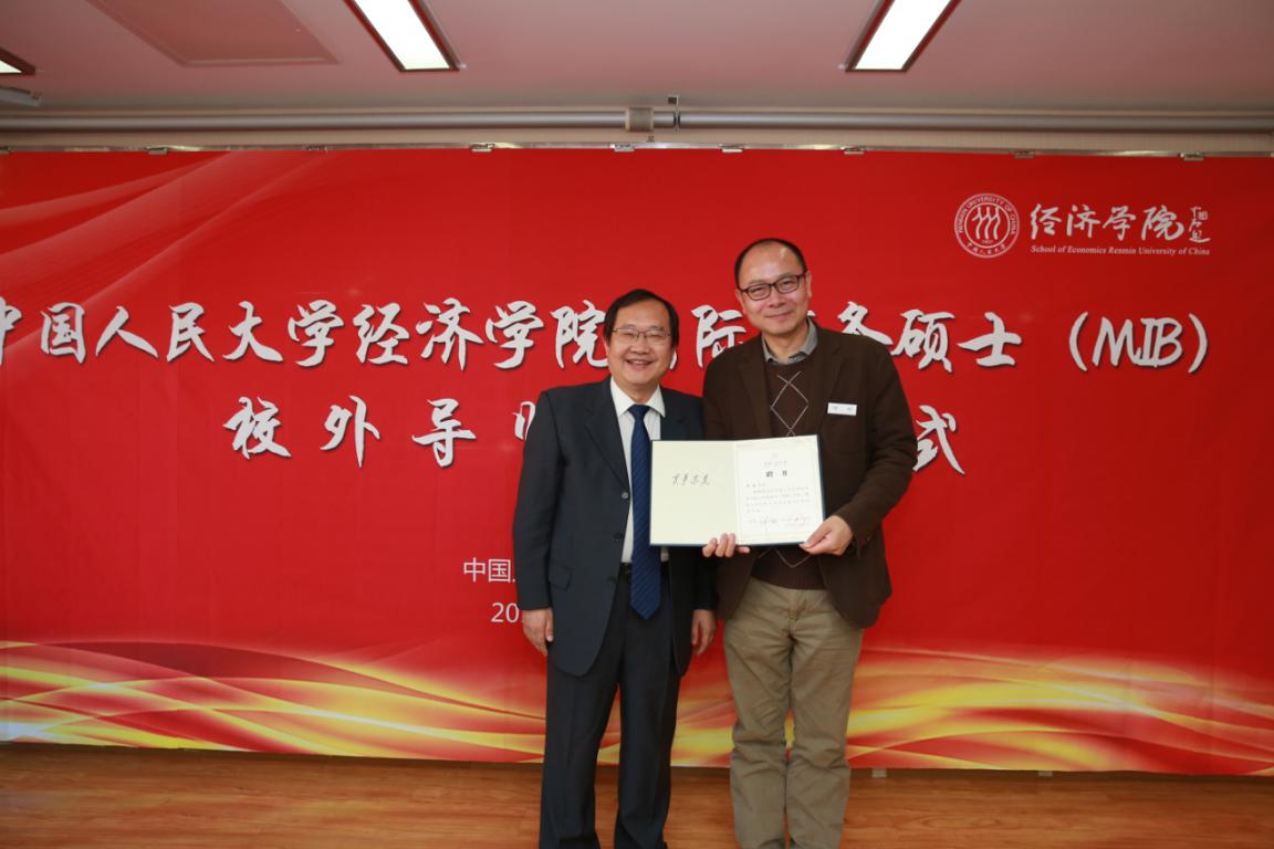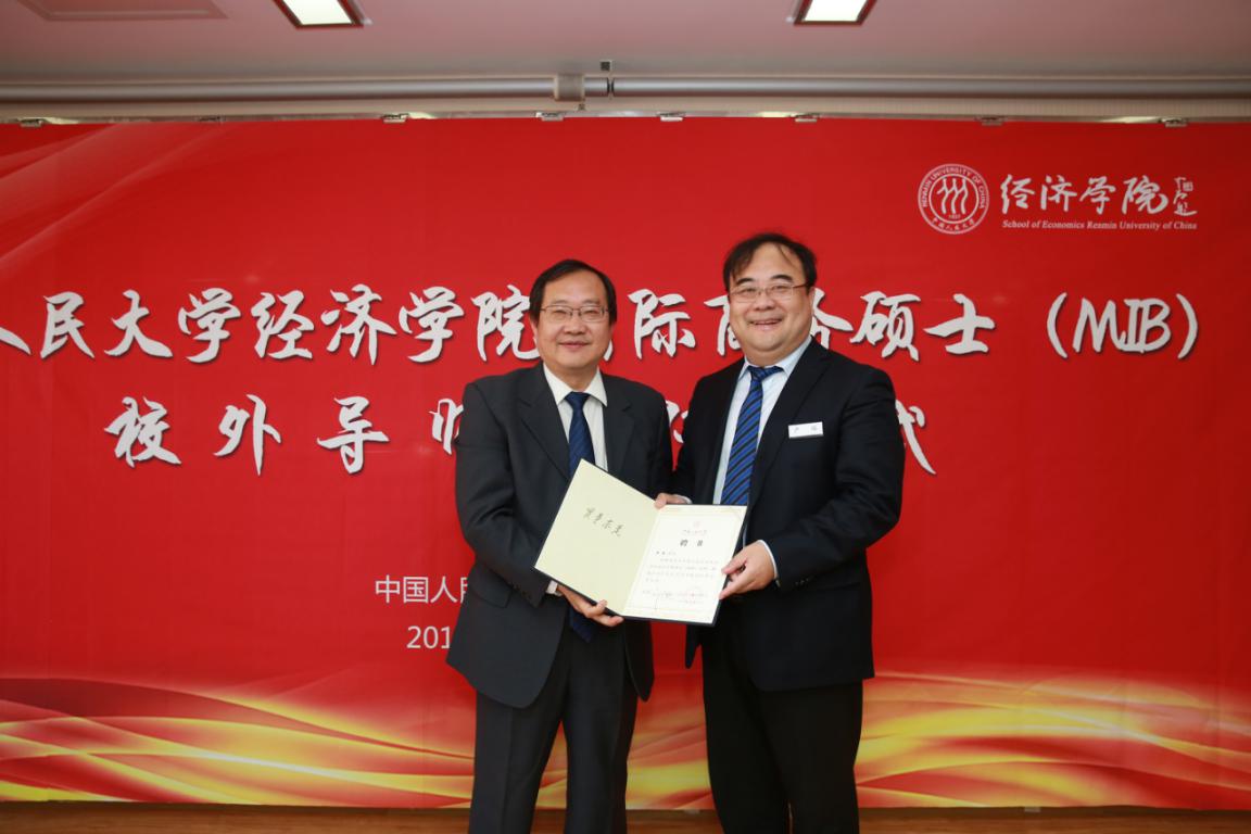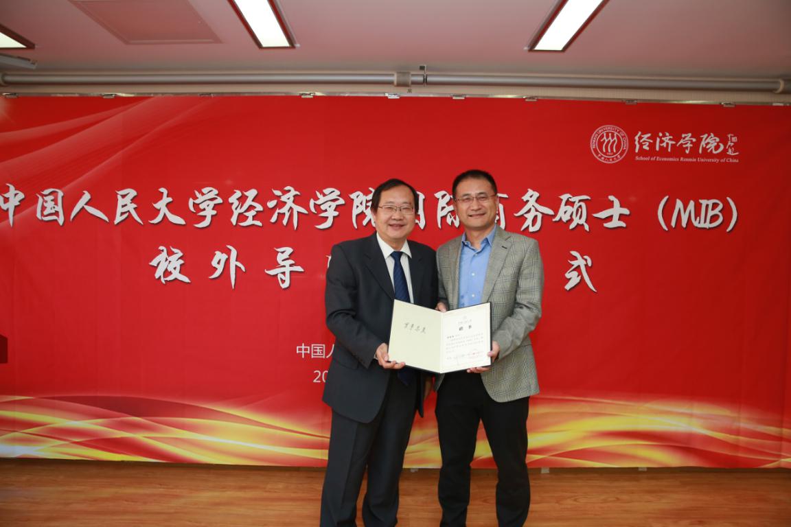 2019年10月26日,h视频 国际商务硕士(MIB)校外导师聘任仪式在明德主楼728报告厅举行。h视频 党委书记兼院长刘守英教授出席仪式并致辞,天弘基金智能投资部高级投资经理戴险峰先生,《财经》杂志主编、《哈佛商业评论》中文版主编何刚先生,好想你健康食品股份有限公司董事长兼总经理石聚彬先生,泛海控股股份有限公司副董事长、总裁宋宏谋先生,正大集团农牧食品企业(中国区)人力资源总裁陶启文先生,OBOR Sinobridge董事长王芊霖女士,中国贸促会企业权益保护中心副主任王雪佳女士,腾讯研究院首席经济学顾问吴绪亮先生,国家电力投资集团中央研究院、国家电力投资集团北京电力公司首席顾问许小春先生,北京鼎诺投资管理公司总经理许余洁先生,安徽省信用担保集团有限公司党委书记、董事长严琛先生及夫人,浙商银行总行党委委员、副行长兼北京分行党委书记、行长张荣森先生等十二位校外导师代表出席仪式。h视频 国际商务项目主任程大为教授,国际商务项目“互联网+”方向负责人程华副教授,以及国际商务硕士校内导师韩玉军教授、杨其静教授、胡霞教授、彭丽红教授、胡曙光副教授、姜少敏副教授、刘小鲁副教授、石慧敏副教授及国际商务19级全体新生出席了仪式。聘任仪式由h视频 党委常务副书记兼副院长王晋斌教授主持。