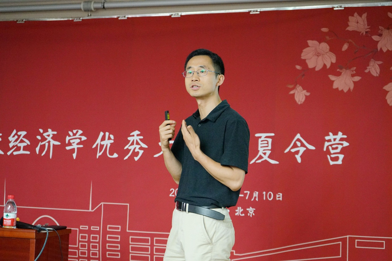 随后,国家发展与战略研究院刘青教授带来了题为《金融危机、中美贸易摩擦与国际经济学》的精彩讲座。首先,刘青教授提出当代大学生应该具有批判性思维和“像一个经济学家一样思考”的思维方式,将专业的学术训练和对现实的思考结合起来,建立起自己的知识框架,学会利用经济学知识分析现实问题。其次,刘青教授从国际经济学的视角分析了2008年金融危机和当前的中美贸易冲突问题。他指出营员们要学好国际经济学,做决策时应当从国际视角出发,从而对问题的认识有更加宏观的把控。然后,刘青教授指出未来五十年,中美竞争仍会波澜壮阔。当代青年学子要不断提升自己,顺应时代潮流,为祖国效力。最后,他对参营学子送上祝福和期待,希望营员们在人民大学生活愉快,同时要积极思考,不断成长,学有所获。