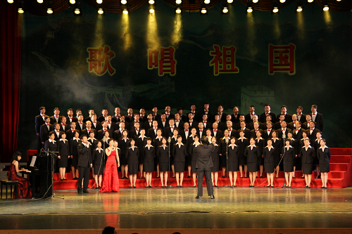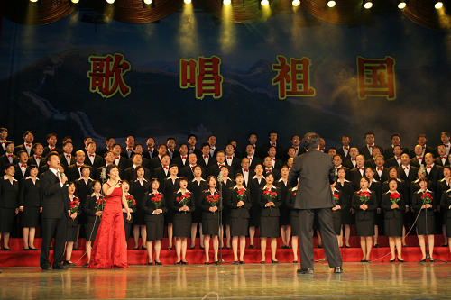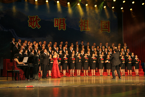 为庆祝建国60周年,学校组织了“祖国万岁”师生演唱会。为了更好地向祖国生日献礼,,h视频 组织了全部由教职工组成的合唱队参加此次活动。