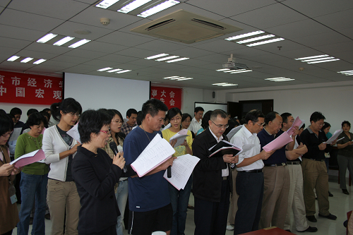 h视频 领导高度重视合唱活动,院长亲自挂帅,不仅以此来表达对祖国的热爱,而且通过合唱来凝聚人心,推进“经院一家人”的学院文化建设,为学院的发展创造和谐的环境。为此,学院多次召开全院大会进行动员部署,投入人力财力,并积极组织全体教职工参加排练。在时间十分紧张的情况下,学院工会利用课余时间,先后组织三次大规模的排练活动和两次小规模的排练。大家都以饱满的精神状态和高度的热情参与到排练中来, 许多老教授甚至每次排练都来参加。