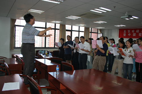 全体合唱教职工在陈建教授的指挥下积极练习