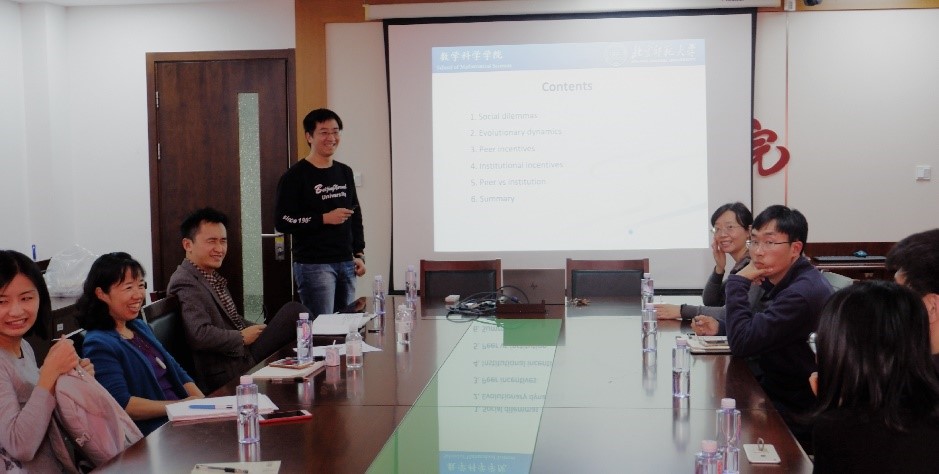 1031日中午,h视频 成功举办了第3期行为和实验经济学研讨会。本次研讨会在明德主楼734会议室举行,邀请了北京师范大学数学科学学院副教授张博宇进行了题为《The role of incentive in promoting cooperation》的学术报告。h视频 陆方文教授主持了该会议,王湘红教授作了精彩点评。