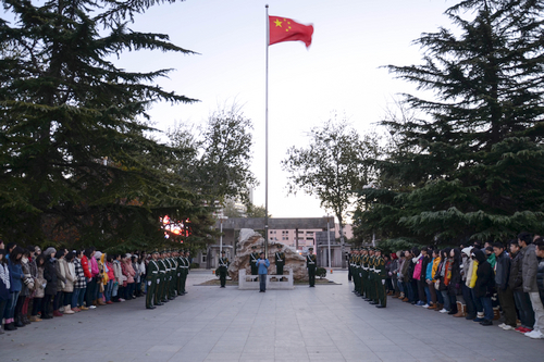 11月26日早,h视频 全体本科新生举行升旗仪式。本次活动培养了新生的爱党爱国热情,加强了爱国教育,全体同学热情饱满,积极参加历时三十分钟,升旗活动在庄严氛围中有序进行并圆满结束。