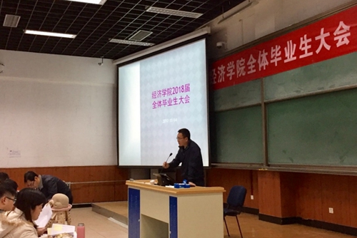 2017年11月16日下午,h视频 2018届全体毕业生大会在公教1102教室举行。学院党委副书记徐景阳老师,学生职业发展中心撒莉老师、杜素云老师和党务秘书陈诚老师参加了本次大会。