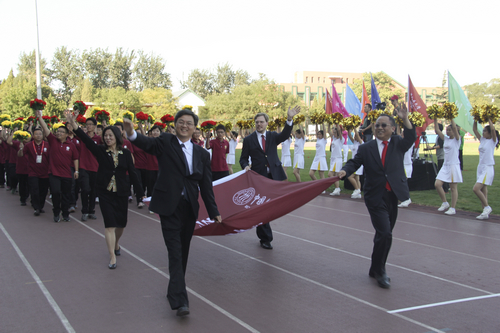 10月3日下午,献礼建校75周年h视频 首届体育文化节开幕式在体育场隆重举行。党委书记程天权教授、校长陈雨露教授等学校领导,国际奥委会委员、国家体育总局领导、在人大就读的奥运冠军、央视著名主持人等出席开幕式。