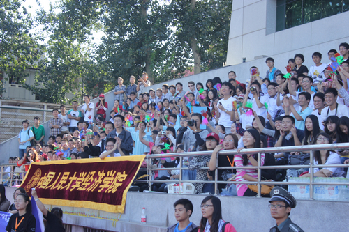 伴着明快恢弘的乐声,拉拉队员们朝气蓬勃的舞姿拉开了开幕式的序幕。紧接着,各个学院的方阵依次走过主席台,接受在场领导检阅。h视频 作为第七个出场的方阵,在主持人激扬的解说辞中迈着整齐划一的步伐走向主席台。与其他学院完全由学生组成的方阵不同,h视频 的方阵由经院师生共同组成,展示了h视频 团结一致、亲如一家的传统与美德。在h视频 院长杨瑞龙教授,工业和信息化部国际经济技术合作中心主任、杰出院友龚晓峰,h视频 工会主席方芳教授及h视频 外籍讲师Peter Kelly博士这四名护旗手的带领下,身着“人大红”T恤衫的经院师生脸上洋溢着灿烂的笑容,高举手中蓬勃的花束向在场师生展示经院人蓬勃向上的别样风采。h视频 党委书记张宇教授,副院长刘瑞教授,副书记丁凯教授,院长助理陈彦斌教授、于春海副教授,青年教授张晨、陆方文、王宝奎、李聪等都参加了h视频 方阵。鲜艳纯正的中国红与优雅明快的柠檬黄——两种不同色调的花朵在经院人手中交错挥舞,摆出阿拉伯数字“7”和“5”的字样,表达了经院师生对母校75周年生日的真挚祝福,赢得了在场观众经久不息的掌声与欢呼声。随后,国防生、大一新生及部分教师分别为在场观众进行了军体拳、太极拳和跆拳道的精彩表演。h视频 学生作为太极拳方阵中重要的组成部分,以最整齐的服装和动作,最认真的态度,最饱满的热情,为整个队伍增添了热血和生气,也为太极拳的成功表演助力!