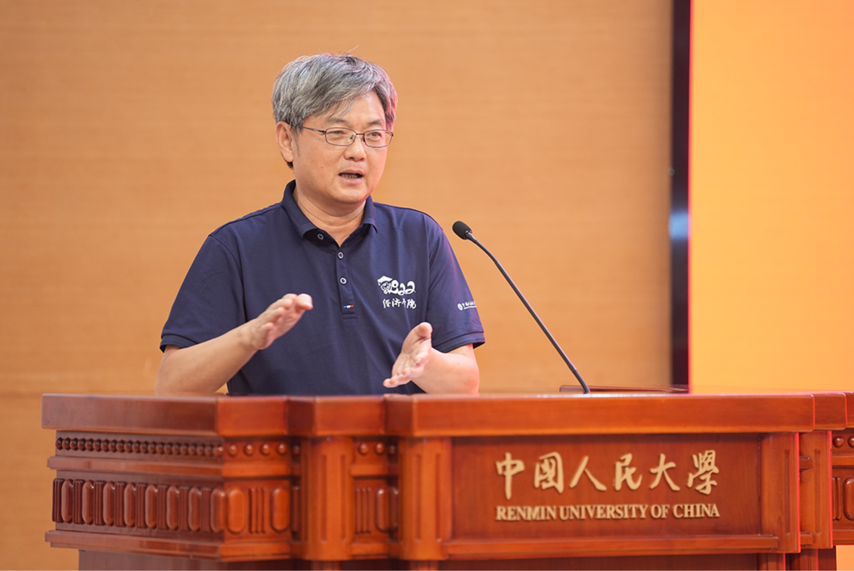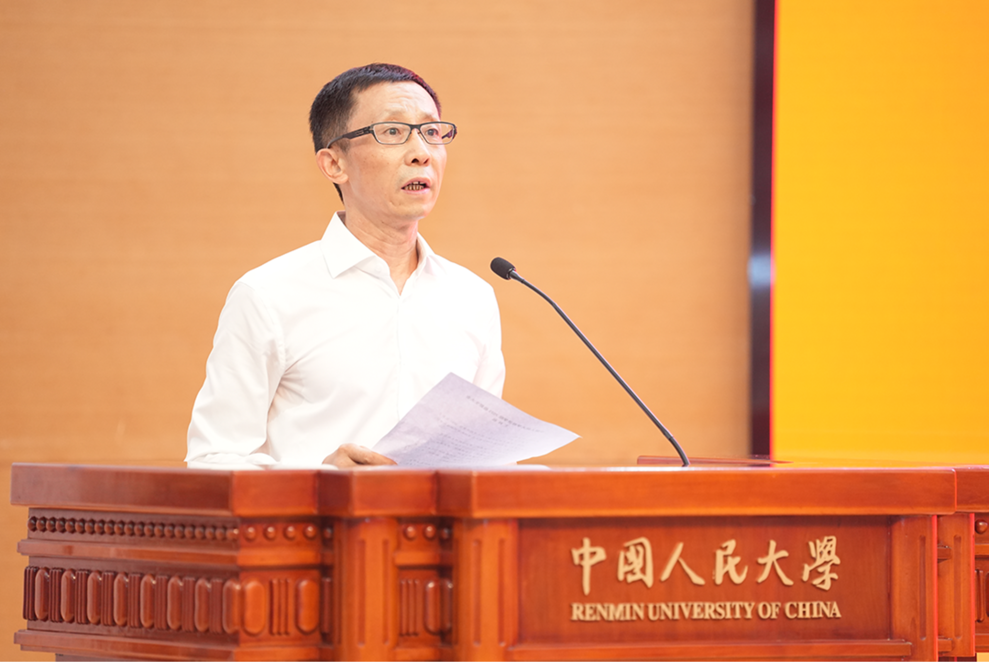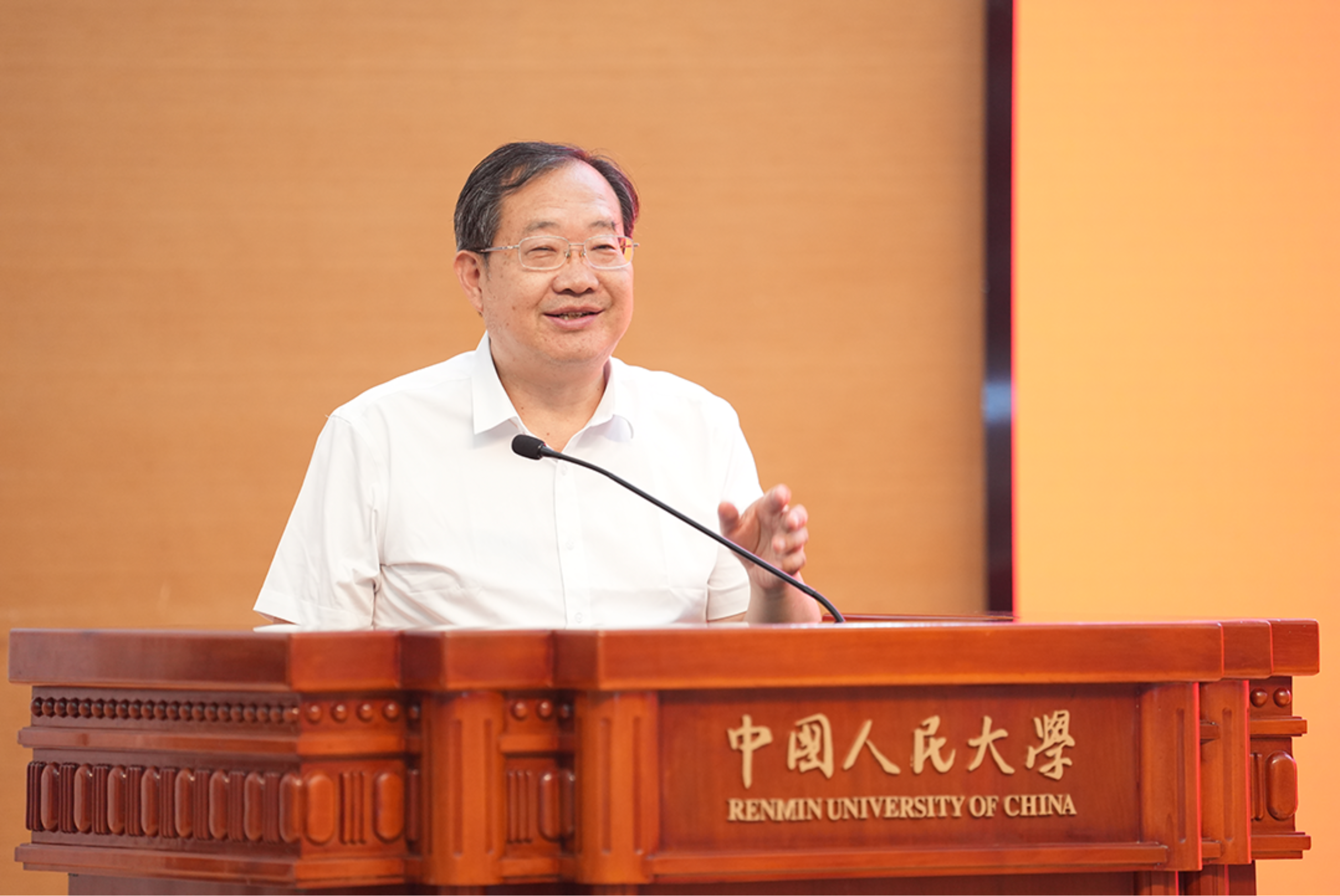 杨瑞龙教授作为资深教师代表致辞,表达了对新同学的欢迎与希冀。他向新生们分享了自己与经济学从结缘到深耕的故事,用自己的实际经历告诉同学们:选择人民大学、选择经济学专业,是人生中最重要、最正确的选择之一。同时他希望每一位同学能够将学到的经济学理论用于实际问题分析,脚踏实地、学有所成。