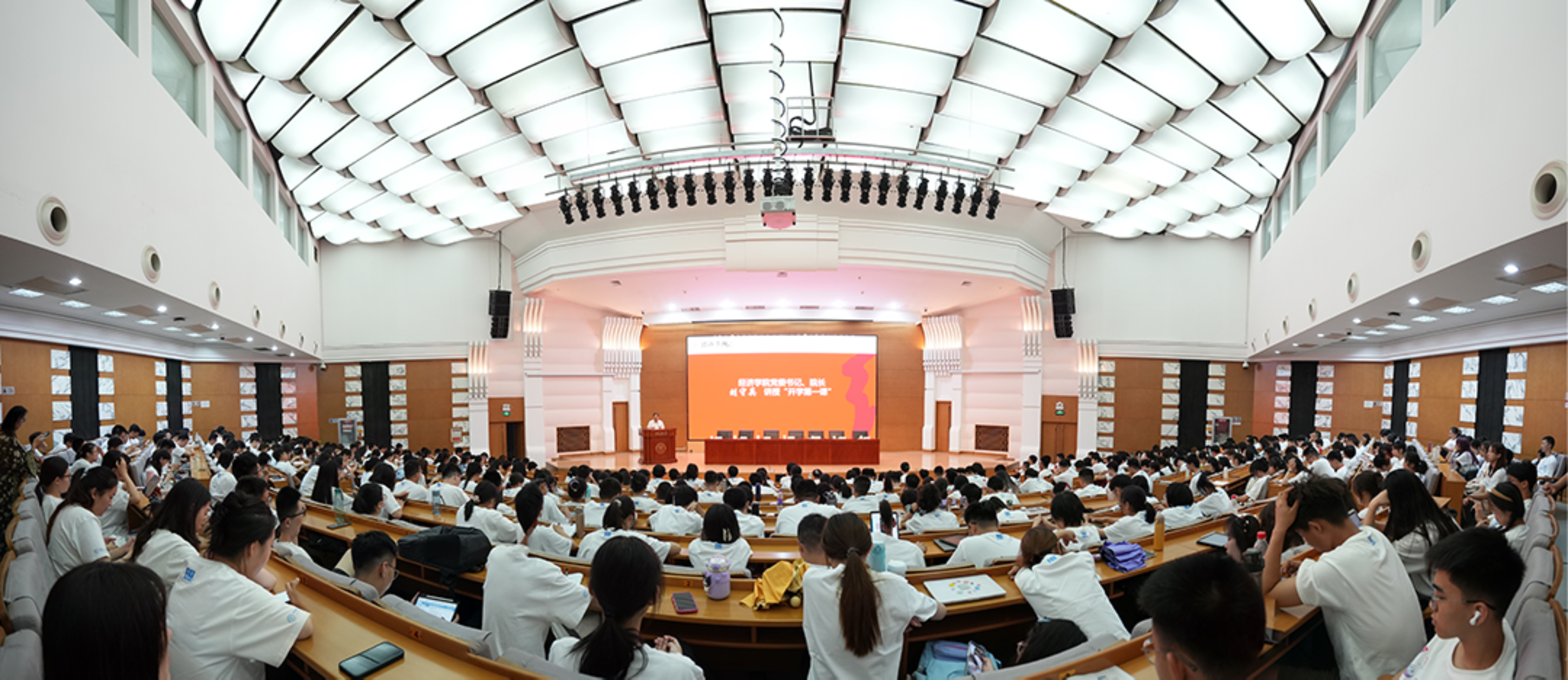 2023级新生大会暨开学第一课圆满落下帷幕。2023级新生即将迎来全新的经院生活,希望全体新生能够铭记老师教诲,始终怀着经世济民的崇高理想,实事求是,传承红色基因,书写时代篇章,争做“复兴栋梁,强国先锋”。