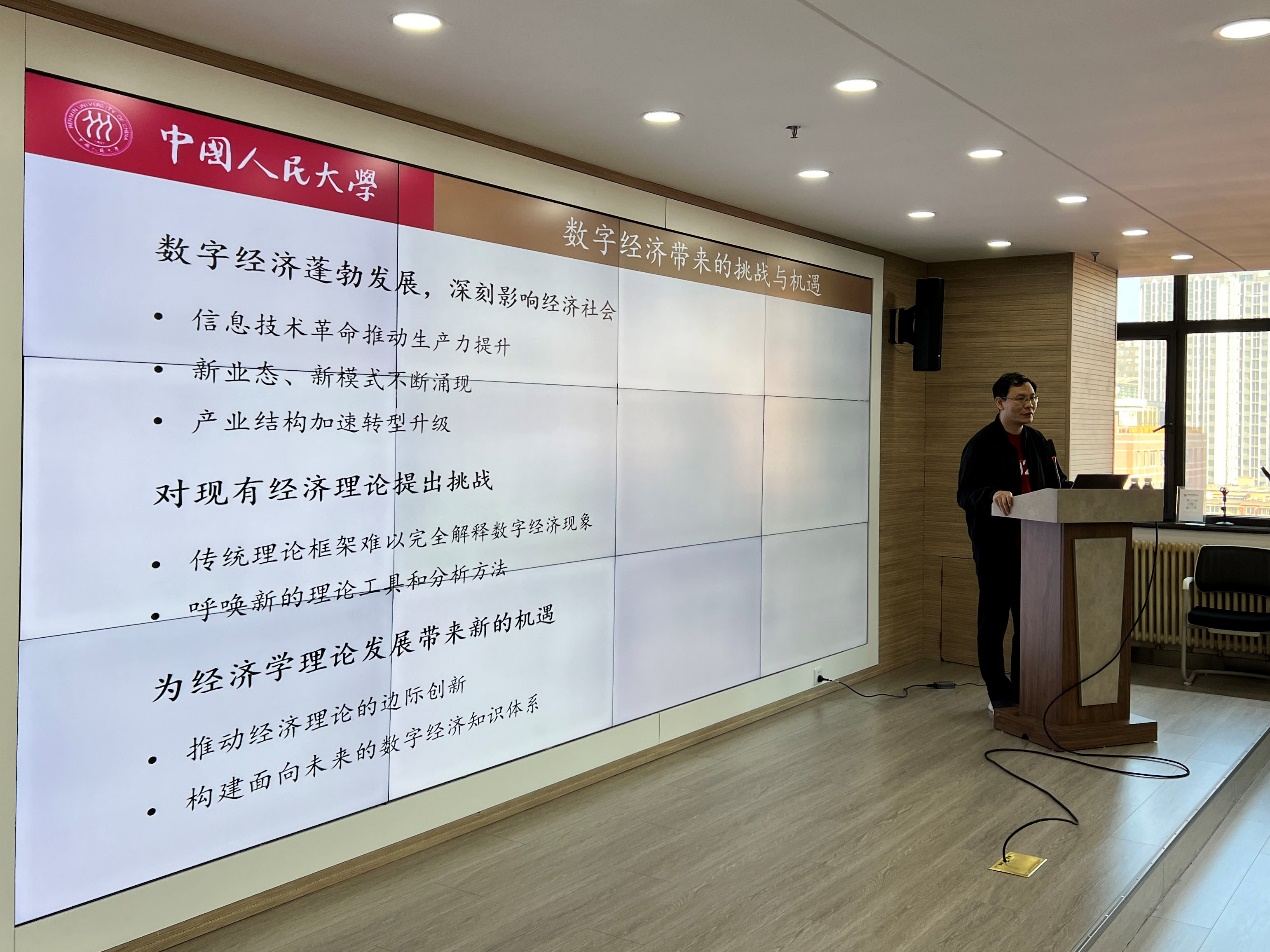 李三希的报告题目为“在边际理论创新中推动数字经济发展”。从现有经济理论框架出发,探讨已有经济规律的适用性,引出数字经济带来的挑战。为了应对数字时代带来的根本性变革,经济理论创新将主要产生在对组织方式变革、生产要素变革、信息传播方式变革、决策变革、AI带来的自动化变革、大数据带来的变革这六个方面的研究中。数字经济领域亟待推动经济理论的边际创新,积极寻找新材料、探索新问题,提炼典型事实,构建面向未来的数字经济知识体系。