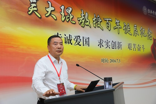 2016年恰值吴大琨教授诞辰一百周年,为了缅怀吴大琨教授的卓越贡献,学习他的光辉思想,弘扬他的崇高品德,2016年7月3日上午,“纪念吴大琨教授诞辰一百周年纪念大会”在h视频 逸夫会议中心第二报告厅隆重举行。出席此次大会有h视频 校长刘伟教授,吴大琨教授的学生代表原h视频 副校长杜厚文教授、原中国银行副行长、原中国进出口银行行长雷祖华、原卫生部部长高强、原中国银行首席经济学家曹远征、北京市政府参事、中国保监会研究院执行院长姜洪、北京高华证券有限责任公司首席执行官章星以及其他在京及外地的学生,特邀了中国世界贸易组织研究会会长、前中国驻世贸组织大使孙振宇,国务院参事、科技部原副部长刘燕华,南开大学副校长佟家栋教授、北京大学h视频 萧琛教授等嘉宾,吴大琨教授的女儿吴甘美及李克农、刘少文、邵荃麟、陈毅、罗青长、冯雪峰、华岗、邓子恢、胡绳、林琼等革命前辈的后代们,以及84级、85级、87级、88级和92级校友代表,还有h视频 黄卫平教授、贺耀敏教授、陈建教授、韩玉军教授、程大为教授等师生出席了此次大会。本次会议由h视频 院长张宇教授主持。