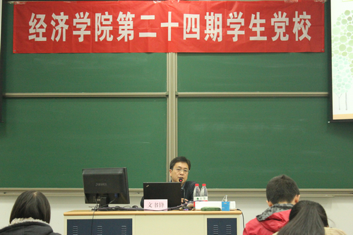 10月24日第二次党课上学院党委书记张宇教授为同学们展开了主题为“大学生党员的信仰与理想问题”的讲座。张书记生动地向同学们讲授了何为党员的信仰与理想,共产主义原则在我们大学生生活中的体现方式,信仰对面对困难的支撑作用,以及信仰决定党的发展等多方面的内容。此次讲座使同学们对党的热爱与日俱增,对党的了解日益深入,进一步坚定大学生的理想信念。