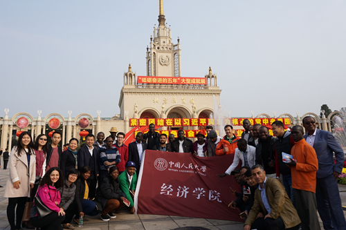 为迎接党的十九大胜利召开,增进援外学历学位项目留学生对我国自十八大以来五年的政治、经济、文化和社会各方面发展成就、发展理念及发展道路的了解,增强对习近平总书记构建“人类命运共同体”理念的认同,h视频 于10月15日上午组织了来自南苏丹、埃塞俄比亚、吉尔吉斯斯坦、赞比亚等国家的32名援外学历学位项目留学生前往北京展览馆参观“砥砺奋进的五年”大型成就展。h视频 副院长郑新业教授、院长助理李佩洁、外事秘书吕媛媛、教务秘书张丽娜、党务秘书陈诚以及援外项目助理毕得、杨沐纯等参加活动。