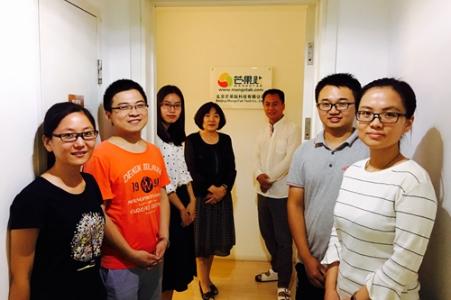 9月7日下午,h视频 中小企业国际合作案例中心调研团再次来到位于北京市上地海淀区悦MOMA科技园区的北京芒果贴科技有限公司。从5月起,调研团队已先后对北京芒果贴科技有限公司进行过两次考察,通过了解企业发展历史、企业组织结构等方面,对企业发展现状有了初步的掌握。本次走进芒果贴公司,旨在进一步了解企业发展情况,补充采集中小企业“走出去”的案例素材。调研团由h视频 胡霞老师带队,博士研究生丁浩、李文杰,以及硕士研究生于玉涵、杨倩影、郭锐五位同学参加。