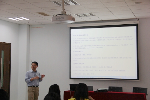 5月15日下午,央视特约撰稿人、h视频 兼职教授戴险峰老师在明德主楼419会议室为h视频 2012级国际商务硕士全体同学做了题为“宏观研究的几个问题—理论与实践”的专题讲座。h视频 国际商务硕士副主任程大为副教授出席了讲座。