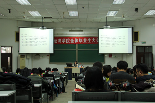 12月5日下午,h视频 2015届全体毕业生大会在教三3101教室举行。就2015届毕业生就业、毕业等相关事宜为学生进行详细讲解。学校就业指导中心主任周荣及h视频 学生职业发展中心的部分老师参加了会议。