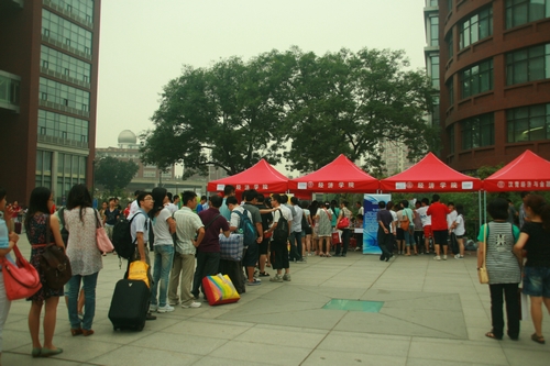 今年,学院的迎新工作和去年相比更加完善。除了学校下发的入学资料,学院对一贯受到新生好评的入学指南,经济风迎新特刊等资料进行了修订,对新生的学习、生活、工作等各方面提供了更为周密的帮助。早在迎新工作正式展开之前,负责迎新的学院老师和团委学生会的同学就已经开始在校园里进行各种准备工作了,插彩旗、拉横幅、搭帐篷,这些小事在炎炎烈日下并不轻松。迎新前日,他们在会场工作致凌晨才离去。同时,学院提前在学校迎新区、宿舍区、教学区等各个地方均悬挂了欢迎条幅,使新生们无论到哪都倍感亲切。院学生会的同学们还为所有的本科新生宿舍贴上了“经院一家人”的标语和院标。在报道点、宿舍区和照片采集处都有专人负责引导,节省了新生及家长的时间。