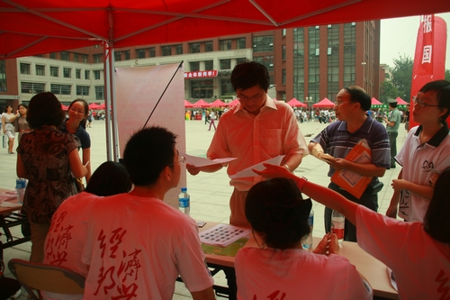 9月7日早上5点半,h视频 迎接2010级新生的工作已经有条不紊的展开。为了让新生能够更快的适应大学生活,学校及学院各级领导都十分重视新生报到工作。纪宝成校长、袁卫常务副校长等学校领导,h视频 杨瑞龙院长、刘元春副院长都亲临迎新现场指导工作。h视频 明占生副书记、丁凯副书记一直在现场指挥迎新工作。