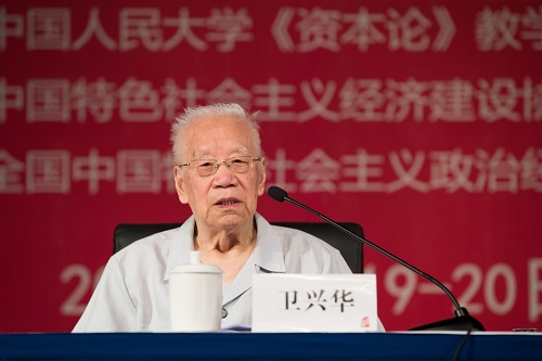 卫兴华教授在主旨演讲中就我国当前社会主要矛盾转化问题进行了深入的理论解读。他指出,正确理解我国当前社会主要矛盾转化问题,不仅是中国特色社会主义政治经济学的一个重要理论任务,而且也是事关新时代中国特色社会主义发展实践的重大现实问题,必须以马克思主义政治经济学和习近平新时代中国特色社会主义思想为指导,进行全面的科学理解。只有正确理解我国社会主要矛盾的转化,才能全面正确理解十八大以来党的一系列新理念新方略新政策,才能更好贯彻落实十九大精神,更好推进新时代中国特色社会主义建设事业的健康发展。
