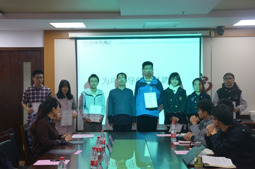 项目学员代表h视频 2016级王潇麟同学发言。他首先感谢了项目提供的宝贵机会,代表全体学员保证遵守项目各项规定,努力学好知识,练好本领。随后他向全体学员发出了四点倡议:多读经典经济学著作,从历史角度增加“厚度”;扎根社会走出象牙塔,通过实践获得新知,加深理解的“深度”;博学多识,使知识横贯中西学术“跨度”;把握向自己所认可的方向而奋斗的“自由度”。