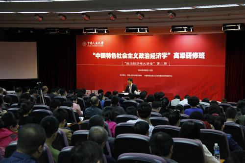 本次“中国特色社会主义政治经济学”高级研修班为期五天,张宇、吴宣恭、周新城、邱海平、杨瑞龙、张占斌、楚序平、黄泰岩、郭庆旺、简新华、吴晓求、张宇燕、林岗、刘伟等十四位老师分别围绕“中国特色社会主义政治经济学的形成发展和历史贡献”、“坚持完善社会主义基本经济制度”、“社会主义市场经济的理论与实践”、“共同富裕的科学内涵和实现途径”、“正确处理政府与市场关系”、“习近平经济思想与中国特色社会主义政治经济学发展”、“中国特色社会主义国有企业改革之路”、“创新驱动中国经济发展”、“供给侧改革与财政政策”、“中国农村土地制度的改革与创新”、“大国经济与大国金融”、“统筹国内国际两个大局,积极参与全球治理”、“关于我国经济增长基本条件的几个问题”、“中国特色社会主义政治经济学说建设需要坚持的主要原则”等十四个主题带来了十四堂精彩的课程,来自全国的二百余名学员参加了本期高级研修班学习。在学习过程中学员们课上认真专注,课下积极讨论交流,表现出了对马克思主义政治经济学研究的高度热情和责任感。至此,本期“中国特色社会主义政治经济学”高级研修班圆满结束。