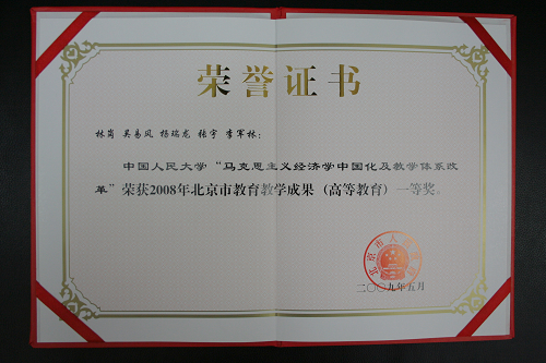 此前,在第六届北京市高等教育教学成果奖评选中,h视频 的林岗、吴易风、杨瑞龙、张宇、李军林主持的《马克思主义经济学中国化及教学体系改革》也荣获一等奖。