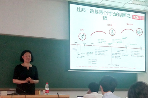 5月25日晚,由h视频 举办的创新经济论坛第十三期会议在明德新闻楼408举行。杜邦中国集团有限公司副总裁兼北京分公司总经理张星萍博士进行了主题为《跨国公司的创新经验对中国的启示》的演讲。
