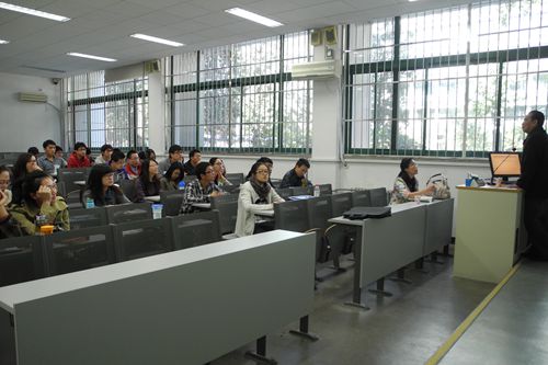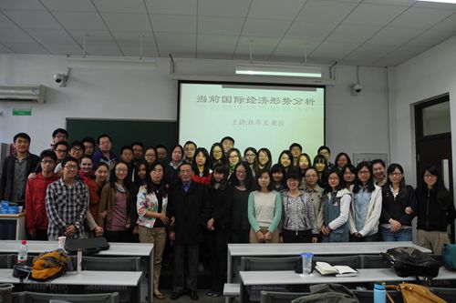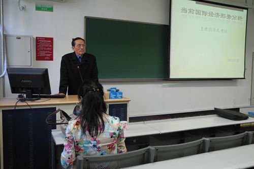 10月16日,h视频 原副校长杜厚文教授来到h视频 2013级国际商务专业硕士班,对当前的经济形势进行了深刻独到的评论,并对同学们殷切寄语。