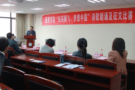 4月3日下午,h视频 “经英腾飞,梦想中国”诗歌朗诵及征文比赛在明德主楼728会议室拉开帷幕。为响应去年十一月习近平总书记在参观“复兴之路”展览时所发表的关于“中国梦”的演讲,以及上级有关会议精神,h视频 分团委号召全体同学学习讲话精神,探寻中国梦主题。h视频 党委副书记丁凯出席开幕式,校团委副书记徐景阳、文学院团委书记黄彦菲、h视频 分团委书记李佩洁以及h视频 班主任代表李聪等受邀担任评委。