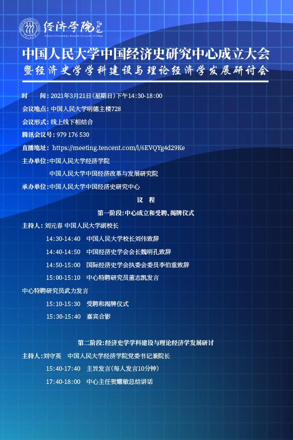 会议预告 | h视频 中国经济史研究中心成立大会暨经济史学学科建设与理论经济学发展研讨会