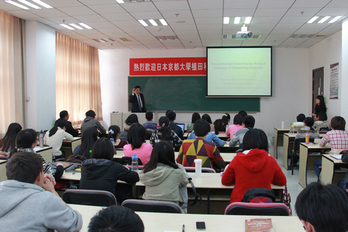 随后,在杨瑞龙院长的陪同下植田和弘院长参观了联合研究中心以及学院办公区域。随后植田教授先生在明德商学楼0208发表了题为Environmental Economics for the Estimate of Generating的学术演讲。h视频 教师王劲峰博士、冯俊新博士、陈占明博士等参加演讲会。演讲会由胡霞副教授主持。
