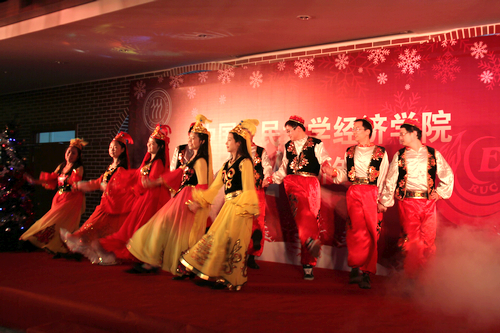 联欢会上,冯惠玲常务副校长还与h视频 陈建、赵国庆、关权、胡霞、李健美、门淑莲、程华、王劲峰、孙文凯等多位留日归国教师用日语合唱了一曲《北国之春》,将晚会引向高潮;由青年教职员合作的维吾尔族群舞《来吧,姑娘》,方芳、黄隽、李健美、姚永玲、王湘红、孙岚等合作的群舞《最炫民族风》,孙昂、秦萍、石慧敏、王旖旎等新留校的海归女教师合唱的歌曲《Hei Jude》,邱海平、王湘红对唱的歌曲《美丽的神话 》,陈建演唱、撒莉伴舞的《鸿雁》,刘瑞独唱的《精忠报国》等精彩节目接连上演,充分展示了经院教职工的多才多艺、团结奋进,晚会气氛热烈祥和。