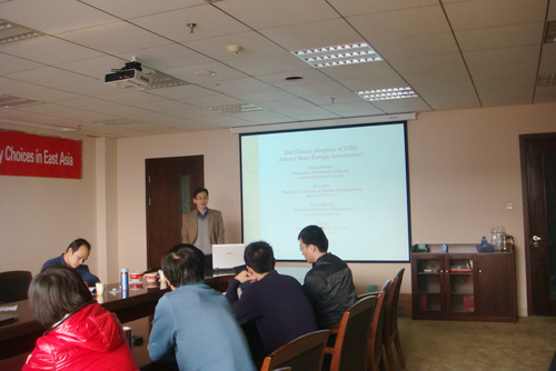 2月29日下午,由h视频 企业与组织研究中心(CFOS)主办的组织经济学Seminar在明德主楼734会议室召开。来自上海交通大学安泰经济与管理学院的夏立军教授报告了他与合作者的英文工作论文“Did China’s Adoption of IFRS Attract More Foreign Investment?”