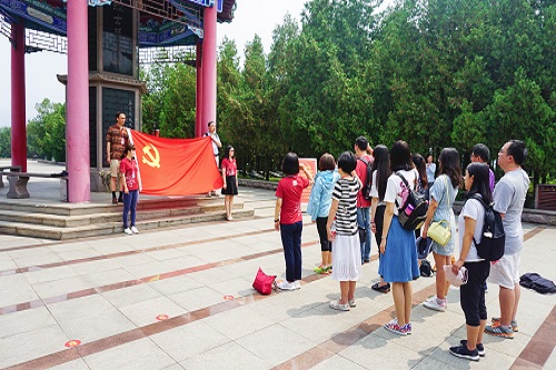 在党的九十六岁华诞到来之际,为迎接党的十九大顺利召开,扎实推进“两学一做”学习教育常态化制度化,弘扬革命老区精神,提高党员教师队伍党性修养,7月3日至5日,h视频 党委政治经济学联合党支部、西方经济学联合党支部、行政党支部一起赴山东省临沂市沂蒙革命老区开展为期三天的红色实践活动。