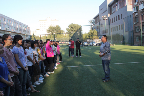 为向学校75周年华诞献礼,按照学校的统一安排,9月12日下午,h视频 2012级本科新生们在校园北足球场开始了第一次太极拳的训练。h视频 党委副书记丁凯副教授带领各班班主任、辅导员亲切看望了参训同学。院学生会的学生干部也为师弟、师妹们带来了贴心的慰问品。