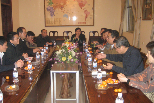 1月16日上午,代表团出席河内国家大学经济大学(目前越南只有两所国家大学,经济大学相当于国家大学之下的h视频 )关于合作研究与交流事项的讨论会。出席会议的越方人员主要有:河内国家大学经济大学校长阮宏山以及副校长、越南经济政策研究中心主任、对外联络部、h视频 处、经济管理系、对外贸易系、金融系、人力资源管理系等负责人。中越高校的院系领导分别介绍了各自学院及学科情况,共同商讨未来河内国家大学与中国高校合作的方式、内容以及研究的课题。初步达成了在2012年下半年举办由中国、韩国和越南三方学者共同举办研讨会的合作意向。
