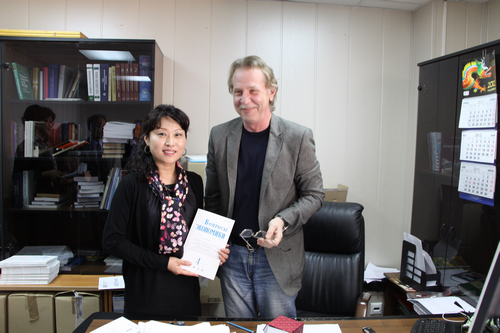 5月17日,代表团与俄科学院《经济问题》执行主编Андрей Янович Котковский等座谈。当关雪凌教授说到在20世纪80年代中期就开始阅读《经济问题》的时候,主编高兴地在最新一期《经济问题》上为关雪凌教授签名留念。