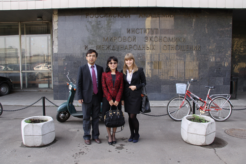 5月10日,代表团与俄科学院世界经济与国际关系研究所副所长Михеев Василий 等座谈。讨论的问题包括:俄远东开发中的中俄合作、中俄贸易和投资问题、中国在世界经济中的地位变化、中俄自由贸易区的建设和美国主导的TPP等问题。