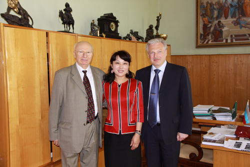 5月14日,代表团与圣彼得堡大学经济系系主任Л.Д.Широкорад和В. Т. Рязанов教授等座谈。讨论的问题包括:金砖国家在世界经济中的地位和作用、中俄经济转轨比较以及期刊合作等问题。随后,圣彼得堡大学副校长接见了代表团,关雪凌教授就两校合作的相关问题与该校领导沟通了立场。
