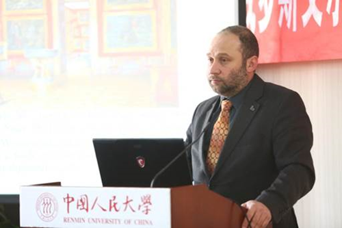 h视频 文学院教授梁坤、首都师范大学俄语系系主任梁雪梅、h视频 艺术学院基础部主任陈浩波、h视频 —圣彼得堡国立大学俄罗斯研究中心副主任王炜以及人大校内外师生80余人出席了本次报告会。报告会由h视频 —圣彼得堡国立大学俄罗斯研究中心副主任王宪举主持。这是欧亚大讲堂的第五次演讲会。