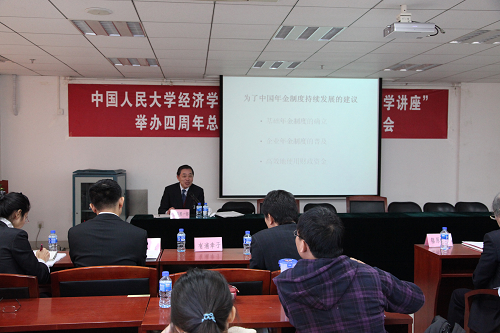 杨瑞龙院长向与会的嘉宾和师生介绍了经济学讲座的举办情况。h视频 “中央三井信托集团经济学讲座”始办于2005年9月,由日本六大金融集团之一的中央三井信托集团资助,主要面向经济学-数学(双学位)实验班开展教学和学术交流活动,到目前为止已持续举办了四年。该“讲座”集国际知名企业、著名学者和知名学府优质生源三方的优势为一体,致力于人民大学国际化高水平的经济学基础教育和学术研究能力培养,提供中日青年学子之间互访交流的平台。迄今,已开设中级宏观经济学、中级微观经济学等课程10余门,全部使用英文教材,用英文授课。同时先后选派10位同学去日本参加学术交流和参观访问。这也是h视频 推进经济学本科教育的国际化、创新化、现代化所迈出的重要一步。