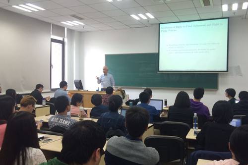 车嘉华教授先介绍了自己在比较制度分析、中国经济、政治经济学领域的近期研究,包括“A Road Next to Democracy”、“The King can do no wrong”等。接着,车教授介绍了本次讲座他将主要讲述的三个问题,分别是——制度是什么,制度运行良好么;怎样让制度良好运行以及谁来进行最终决断(Rights to final judgement)。车教授认为制度是一种对权利的分配,制度规定的是每个社会角色的权利,而非特定人的权利。但是制度本身也需要被执行,那么谁来监督监督者,车教授从能力、激励等方面加以了分析,并认为Public policy和Final judgement是不同的,两者的制定和执行人也不同。最后,车教授从Collective decision making,Cohort等几个角度分析了为何好人寥寥。整个讲座脉络清晰,逻辑性极强,此次讲座对于从事比较制度分析、中国经济、政治经济学等领域研究的学者和学生具有良好的启发意义,开拓了大家的思维。