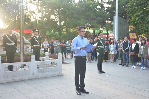 2017年9月18日清晨,秋风飒爽、红日初升,为纪念“九·一八”事变八十六周年,h视频 升国旗仪式在东门求是园隆重举行。h视频 2017级全体本科新生参加仪式。