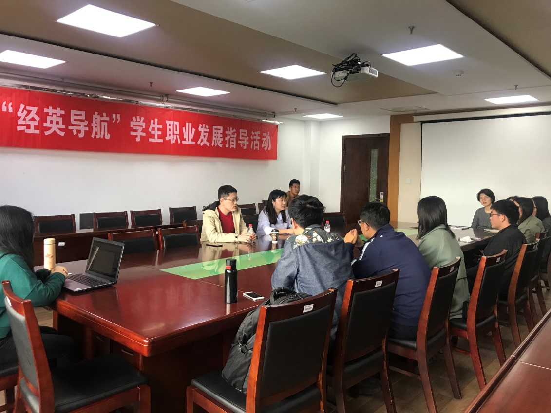 10月27日,由共青团h视频 委员会、h视频 学生职业发展中心主办、h视频 团委研究生会承办的“经英导航”系列活动之求职指导篇——“国考报名的那些事儿”小型圆桌会在h视频 明德主楼734成功举办。本次会议邀请到了2014级国际商务专业、现就职于国务院国资委财务监管局的谢同飞校友为大家带来经验分享。h视频 党团学办公室、学生职业发展中心的撒莉老师主持了本次活动。