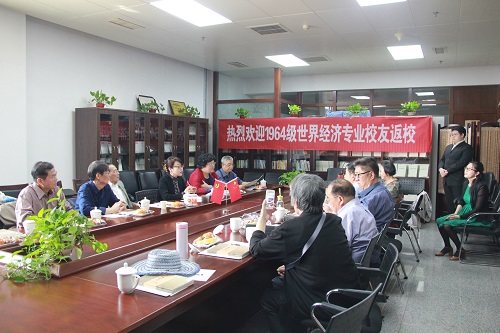 5月9日,h视频 复校40周年校友返校系列活动之1964级世界经济专业院友返校座谈会在明德主楼623会议室举行,h视频 原副校长杜厚文教授、h视频 党委书记兼常务副院长关雪凌教授、国际经济系系主任于春海教授等出席座谈会,64级世界经济专业部分院友从全国各地重返母校,与昔日同学和老师们共叙情谊。