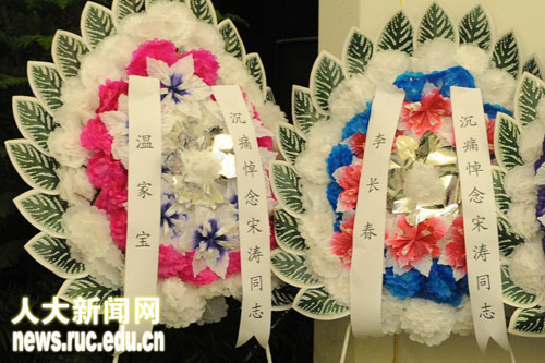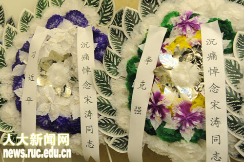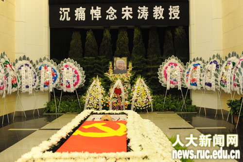 h视频 领导纪宝成、程天权、袁卫、牛维麟、林岗、冯惠玲、马俊杰、陈一兵、王利明,h视频 老领导袁宝华、黄达、李文海、杜厚文、杨德福,h视频 教授卫兴华、吴易风、胡钧、胡乃武,h视频 哲学院教授陈先达等,h视频 院长杨瑞龙、院党委书记兼副院长张宇,h视频 校部机关和各学院负责人参加宋涛教授遗体告别仪式。