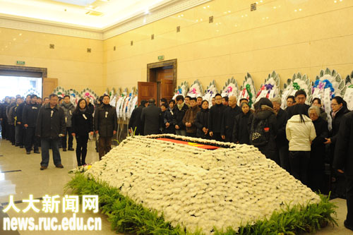 上午9时,宋涛教授的亲友、同事、学生和各界人士冒着严寒,在八宝山革命公墓东礼堂门前排起了长队。大家怀着极其沉痛的心情,默默追忆宋涛教授的辉煌一生和崇高品格。