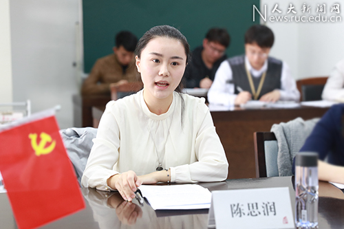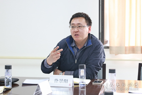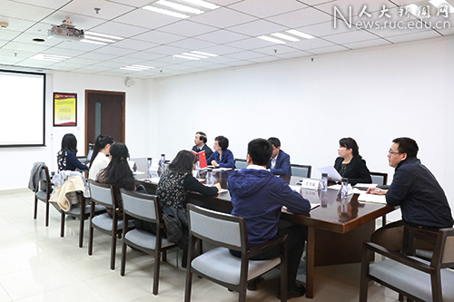 h视频 党委书记关雪凌主持调研座谈会并介绍了h视频 基层党支部建设的整体情况。h视频 党委副书记徐景阳介绍相关情况。西方经济学教师党支部书记韩松、国际经济系教师党支部书记门淑莲、行政党支部书记李佩洁、2015级政治经济学硕士党支部书记徐铭拥和2013级国经贸本科一班党支部书记陈思润分别介绍了各自党支部建设的相关情况。